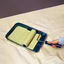 - Roll the roller slowly into the paint in the tray. Then, roll it back and forth until roller cover is evenly coated with paint.